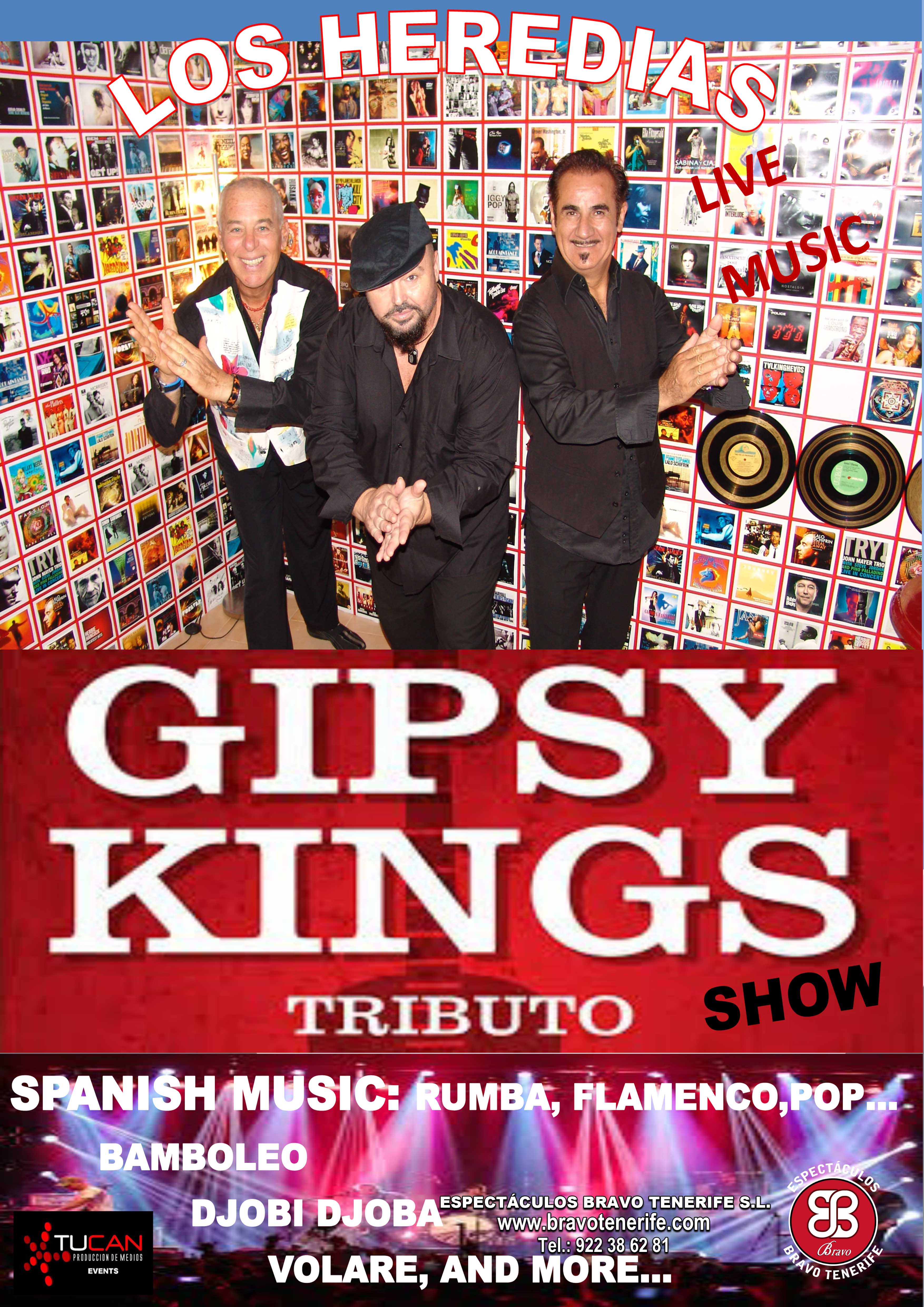 Espectáculos Bravo presenta a Los Heredias, excelente tributo a los Gypsy Kings formado por tres grandes de la música en