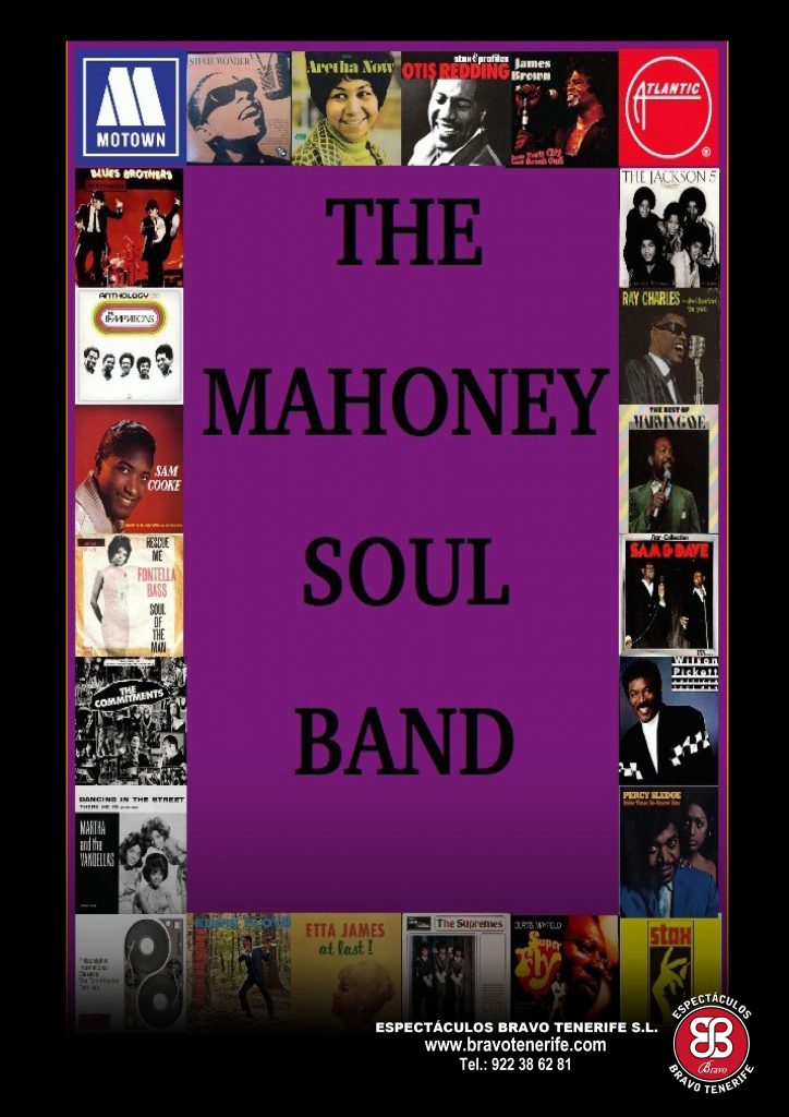 Espectáculos Bravo presenta The Mahoney Soul Band. En este apartado están presentes las bandas que por cantidad de componentes, como de variedad musical se integran perfectamente en eventos, congresos, bodas, galas y cualquier compromiso que requiera «lo mejor» .